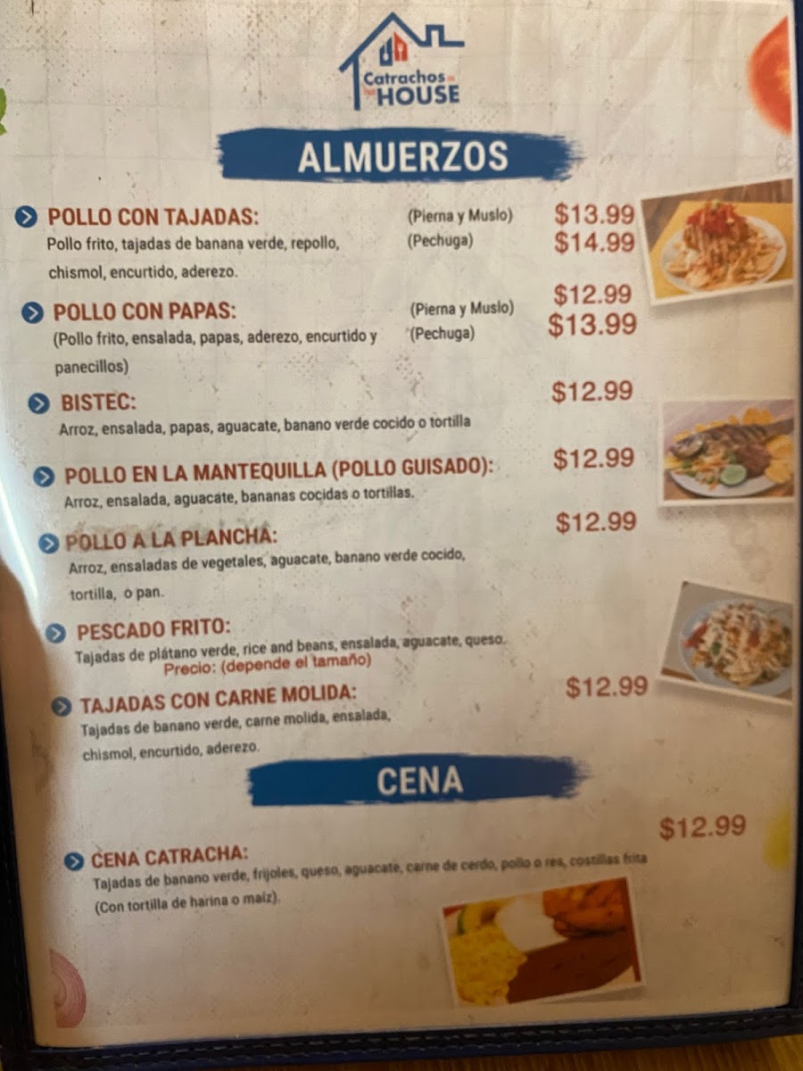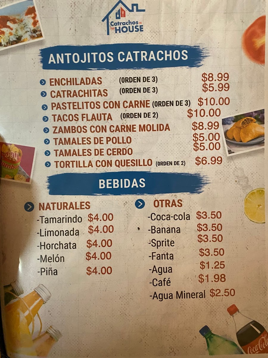 Dinner at Catrachos In The House doesn’t disappoint either. Their Cena Catracha (Catracha Dinner) is a must-try, offering a well-rounded taste of Honduran culinary tradition. For a refreshing drink, the Bebidas - Naturales section includes favorites like Horchata (Rice Drink), Maracuya (Passion Fruit), and Limonada (Lemonade), which pair perfectly with any meal.